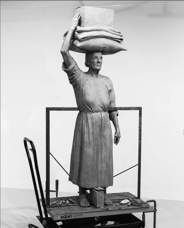 ‘No Return’ clay for bronze, life size 2022. Today many people are forced to leave everything and all they love behind. Right now woman in Afghanistan have to face the terrible reality in their country and for them there is no return.